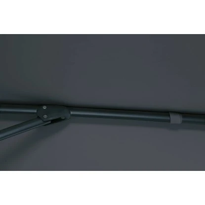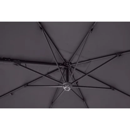 Dank der Kurbelmechanik können Sie den Ampelschirm bequem öffnen und schließen. Aufgespannt besitzt er einen Ø von 300 cm. Um den Schirm gezielt für einen idealen Schattenplatz ausrichten und bei Bedarf je nach Sonnenstand anpassen zu können, lässt er sich um 360° drehen. Die maximale Höhe des Sonnenschirms beträgt 260 cm.