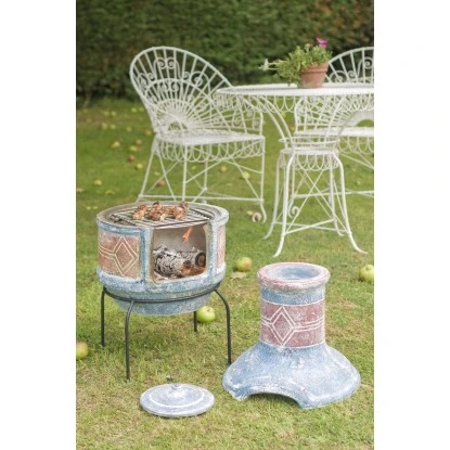 Der Grillkamin deckt gleich zwei Funktionen ab: Er kann sowohl als Kamin, als auch als Grill verwendet werden. Dies ermöglichen der abnehmbare Kaminabzug und der verchromte Grillrost, der bei Bedarf einfach montiert werden kann. Somit dient er an warmen Tagen als Grill und an kalten Tagen als Feuerstelle.