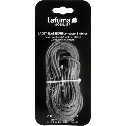 Elastische anthrazitfarbene Gummischnur (8m) zum einfachen Austauschen der traditionellen Schnürung bei Lafuma Mobilier Sonnenliege Siesta.