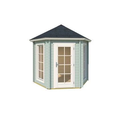 Der Lasita Maja Pavillon Inverness besteht aus hochwertigem Holz und überzeugt durch seine solide Verarbeitung. Die Dachkappe ist im Lieferumfang enthalten und verleiht dem Pavillon einen besonderen Charme, während die bodentiefen Fensterfronten und die verglaste Einzeltür für ein angenehmes Raumklima sorgen.