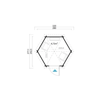 Mit einer Fläche von 4,73 m² bietet der Pavillon Inverness genügend Platz für entspannte Stunden und gesellige Zusammenkünfte. Die bodentiefen Fensterfronten und die verglaste Einzeltür sorgen für eine lichtdurchflutete Atmosphäre und machen diesen Pavillon zum idealen Ort zum Verweilen.