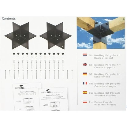 Das Nesling Eckelement Pergola Kit Grau 2-teilig ist ein Eckelement für eine stabile Eckverbindung. Sie werden zu zwei Stück im Karton geliefert. Farbton RAL 7016