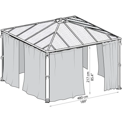 Das Palram – Canopia Vorhang-Set für den Pavillon Palermo 4300 ist für den kompletten Pavillon und deckt alle Seiten ab. Die einfache Befestigung erfolgt durch die im Pavillon inbegriffenen mitgelieferten Clips.