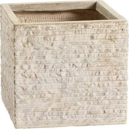 Der helle Pflanztopf aus der Serie Bernay wird mit Blumen, Kräutern oder Gräsern bepflanzt. Er bietet beispielsweise eine passende Umgebung für mediterrane Gewächse. Der Pflanztopf besitzt eine Oberfläche mit einer Rillen-Struktur in Stein-Optik und eine Farbgebung in hellen Naturtönen. Die würfelartige Form wirkt massiv, der Topf besteht jedoch nicht aus schwerem Stein sondern aus dem Kunststein Fibreclay. Sein Gewicht ist daher gering und er überzeugt durch eine besondere Unempfindlichkeit und Pflegeleichtigkeit.