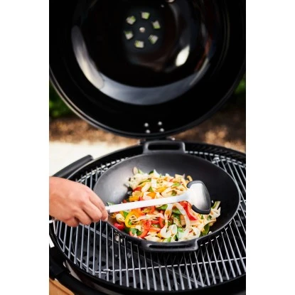 Er sorgt für einen großen Garraum, der ausreichend Platz für passende Aufsätze wie z. B. Rippchenhalter oder Hähnchenbräter bietet.