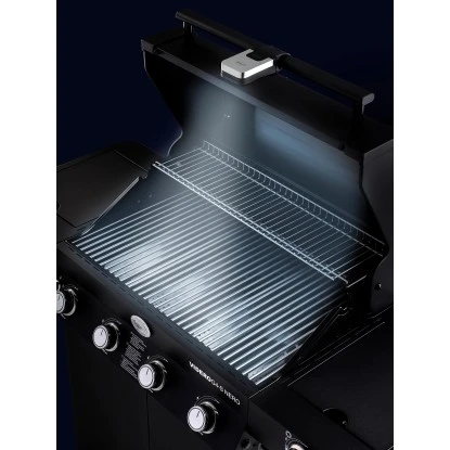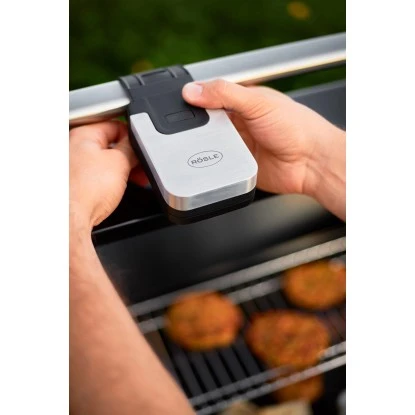 Die Rösle LED Griffleuchte Universal BBQ ist passend für alle Videro / ARTISO-Modelle und Kugelgrills. Die mit 200 Lumen COB-LED Leuchtmittel versehene, stylische Grilleuchte verfügt über zwei Helligkeitsstufen. Der strapazierfähige Silikon-Gurt sorgt für eine sichere und einfache Befestigung am Deckelgriff. Die drei erforderlichen AAA Batterien sind nicht im Lieferumfang enthalten.