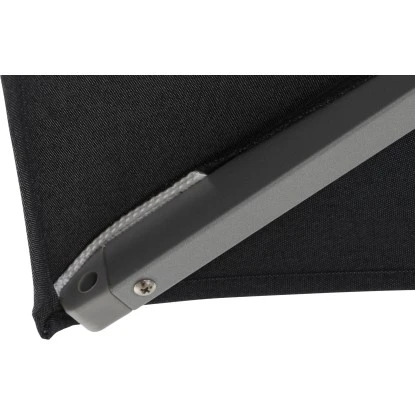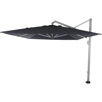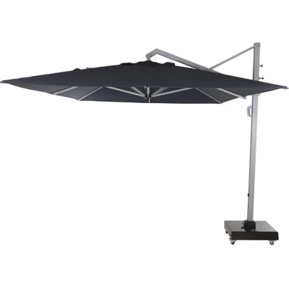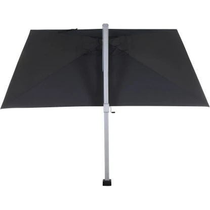 Der erstklassig verarbeitete Sonnenschirm Stratos von Siena Garden in Schwarz mit seiner praktischen rechteckigen Form bringt ein modernes Ambiente in Ihren Garten oder auf Ihre Terrasse. Als optimal einstellbarer Schattenspender sorgt er für ein geselliges Beisammensitzen bei angenehmen Temperaturen. Durch seinen seitlich befindlichen Schirmmast geht kein Platz verloren, sodass Ihnen eine frei nutzbare Fläche unter dem Schirm zur Verfügung steht. So bekommen Sie leicht Ihre Sonnenliegen oder auch eine ganze Möbelgruppe zum Essen, Entspannen und Plaudern untergebracht.