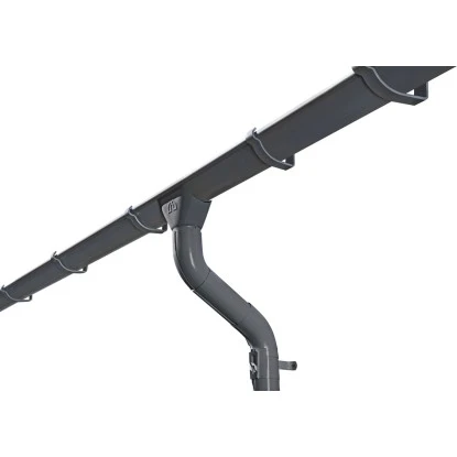 Witterungsbeständiges Metall-Regenrinnen-Set in Anthrazit. Durchmesser Rinne 100 mm, Durchmesser Fallrohr 75 mm. Komplett-Set inkl. Rinne, Fallrohr, Ablaufrohrbogen, Verbindungselementen, Rohrschellen, Regenrinnenhaltern und Silikonkartusche zum Abdichten. Einfaches Stecken und Verklemmen der Teile, einmaliges Verkleben der Rinnenendstücke und Rinnenverbinder, kein Verlöten oder Verschweißen.